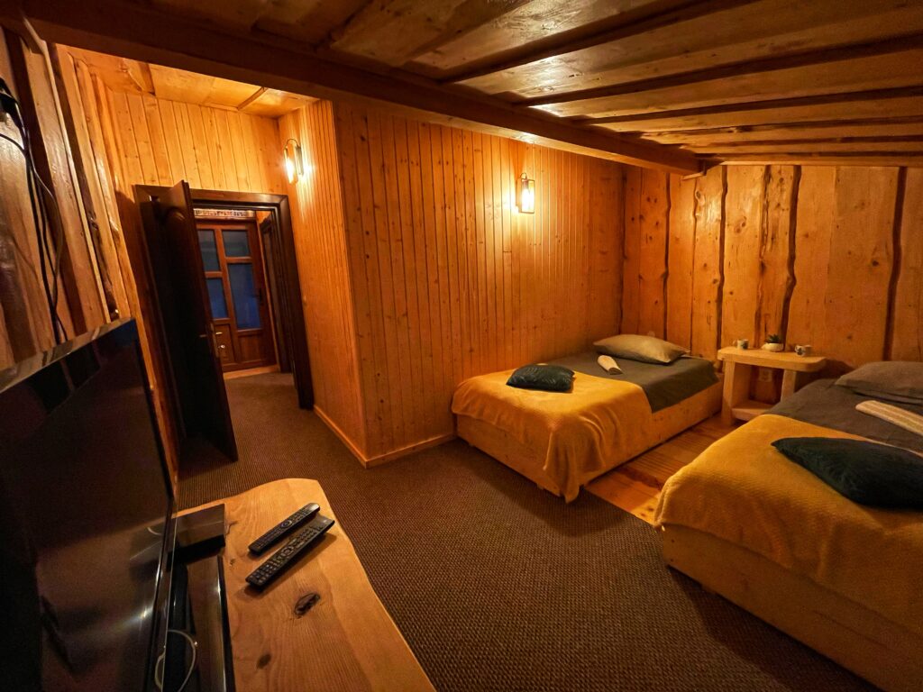 Un dormitor twin cald și primitor, îmbrăcat în lemn natural, perfect pentru o ședere plină de liniște. Ferestrele sale dau spre cărarea pe care trec vacile dimineața către pășune, oferind o priveliște autentică de viață la țară. Ideal pentru două persoane care caută confort, simplitate și un strop de farmec rural.